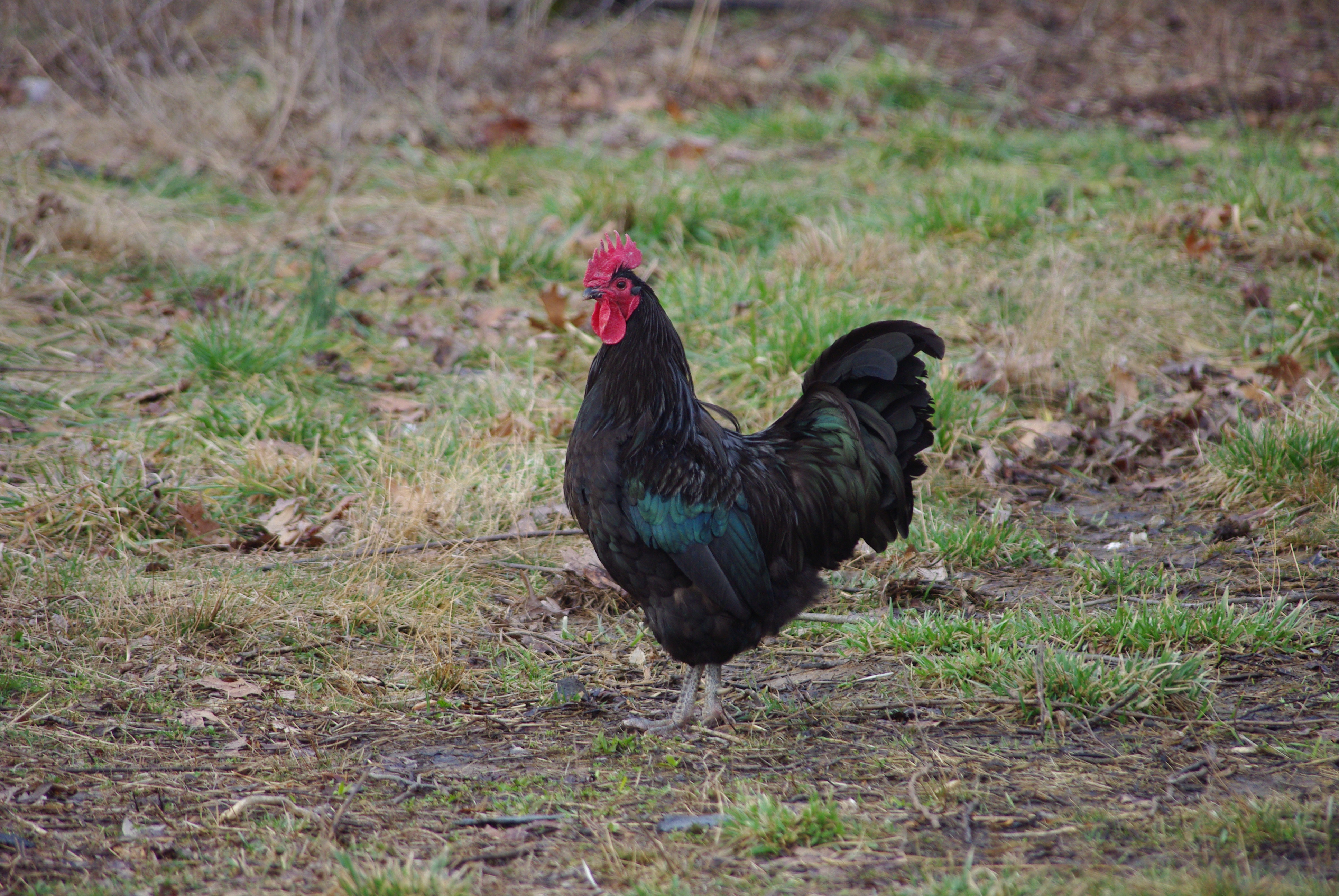 My Murray McMurray catalog assures me that they are quiet and gentle. HA! This fella has spurs nearly an inch long and knows how to use them–he has pierced the skin on my wife’s shins through jeans with them. If he hears another rooster mating with a hen, he goes running and beats the other rooster about the head and face. He is feared by roosters and followed constantly by hens. So it goes.